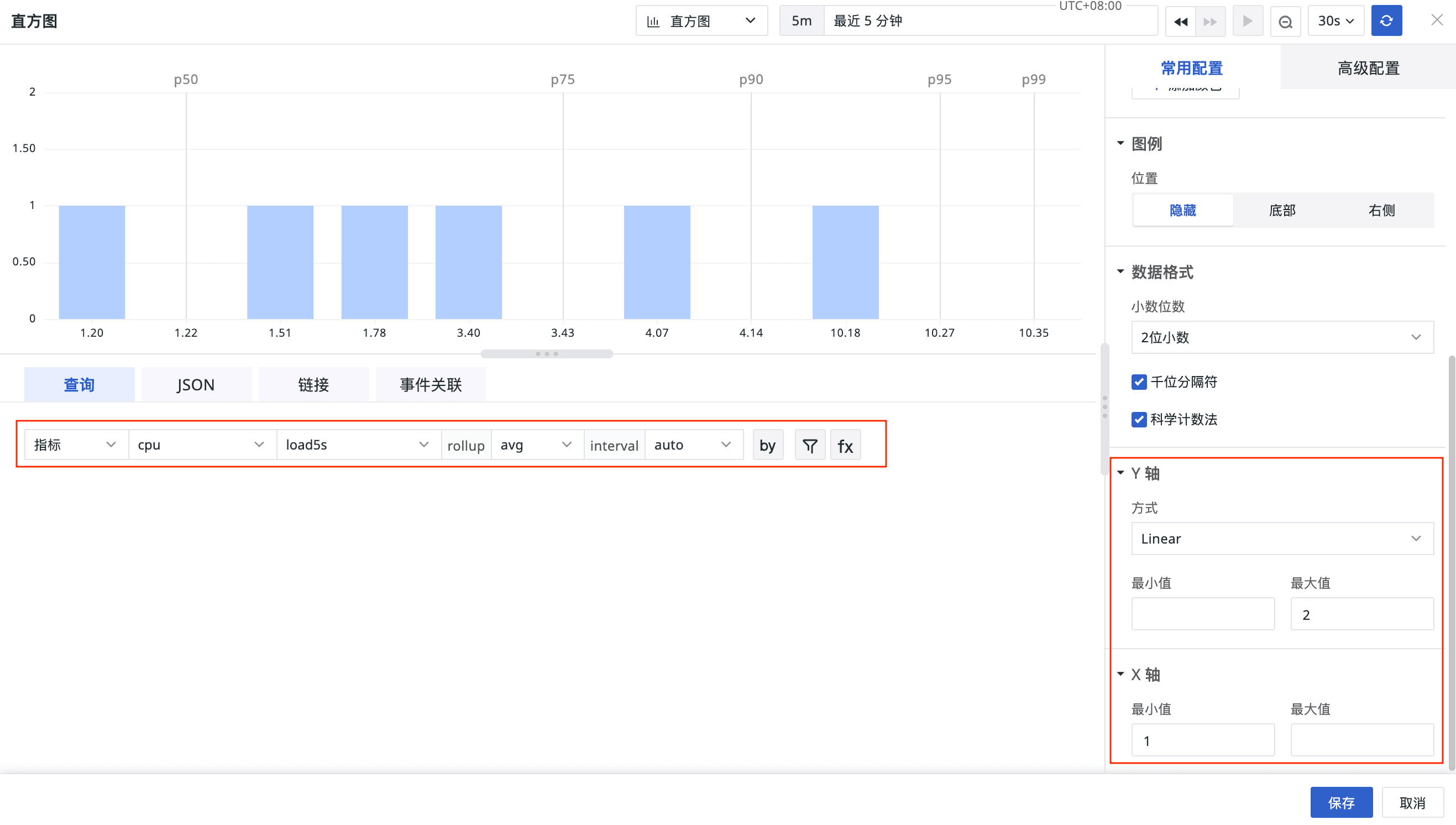 新增 X 轴、Y 轴配置,通过设置最大值、最小值,自定义数据展示边界。