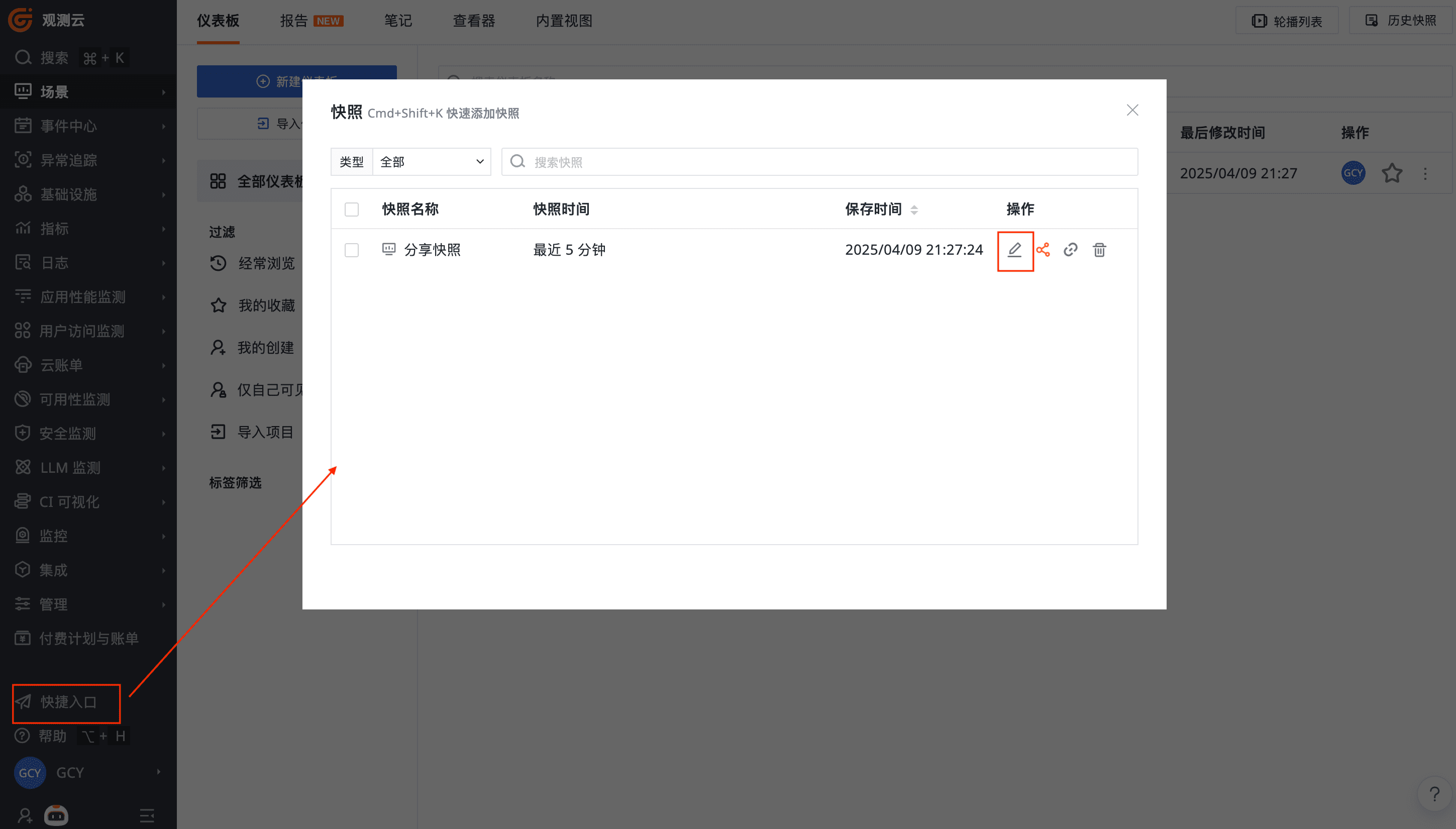 已经保存的快照支持重新编辑。