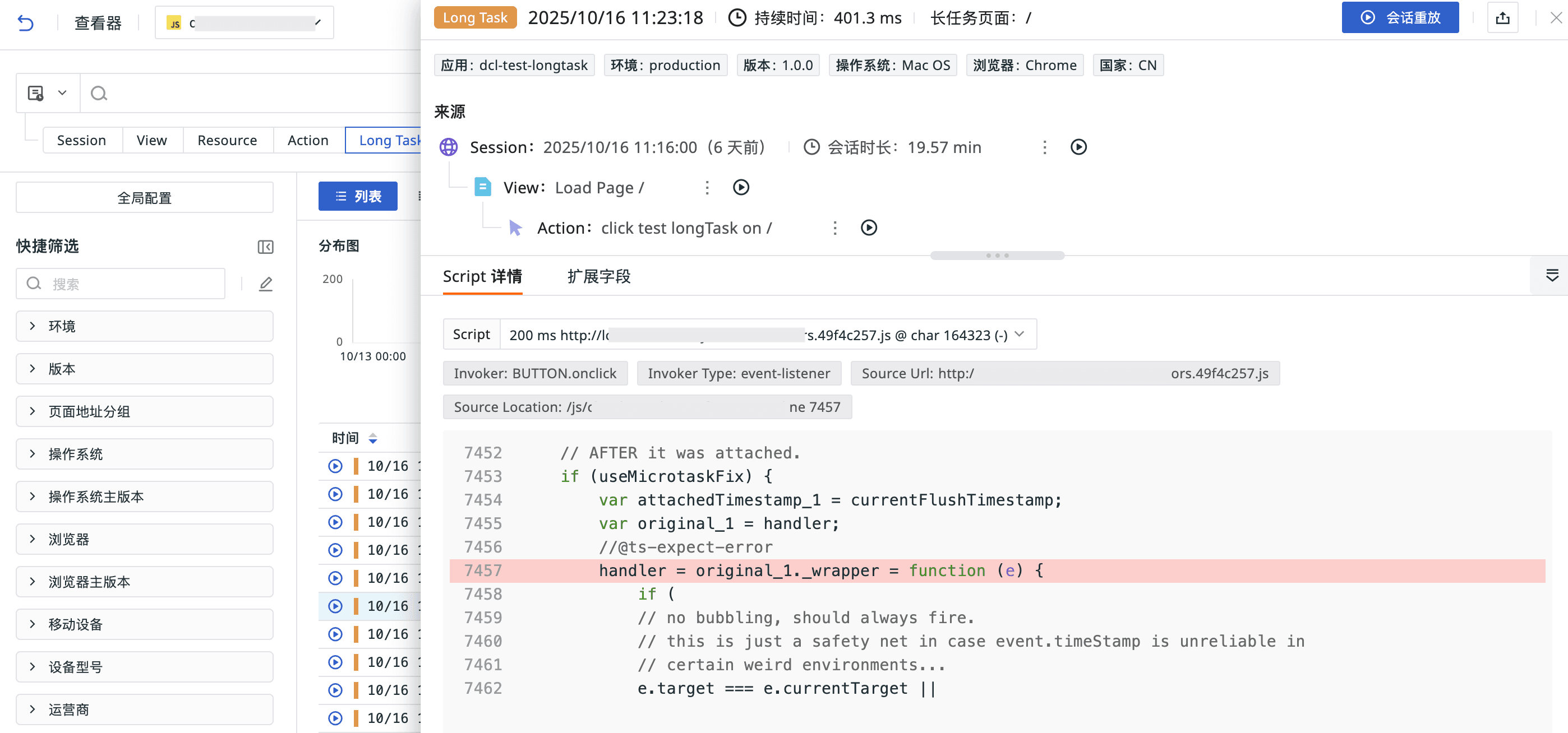 2、RUM > Long Task 查看器 > 详情页:新增 Script 详情,显示还原代码。