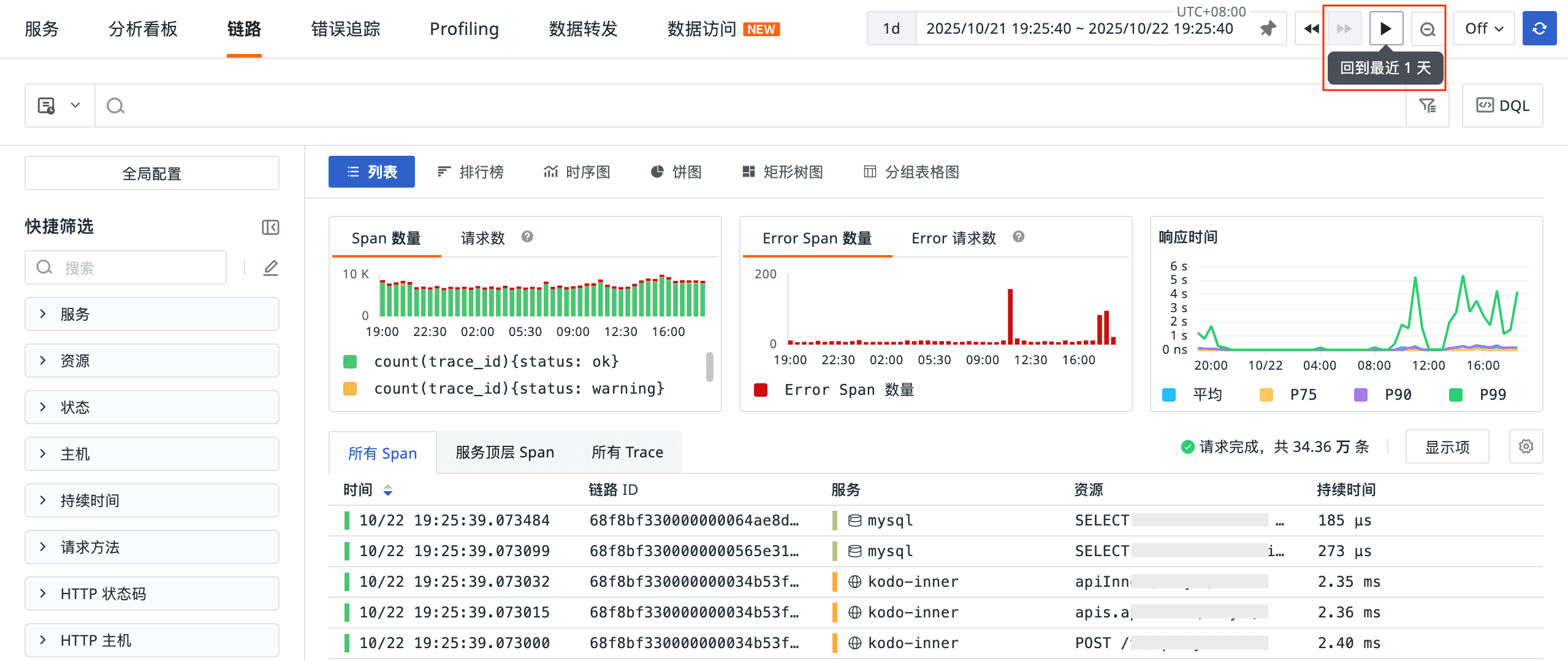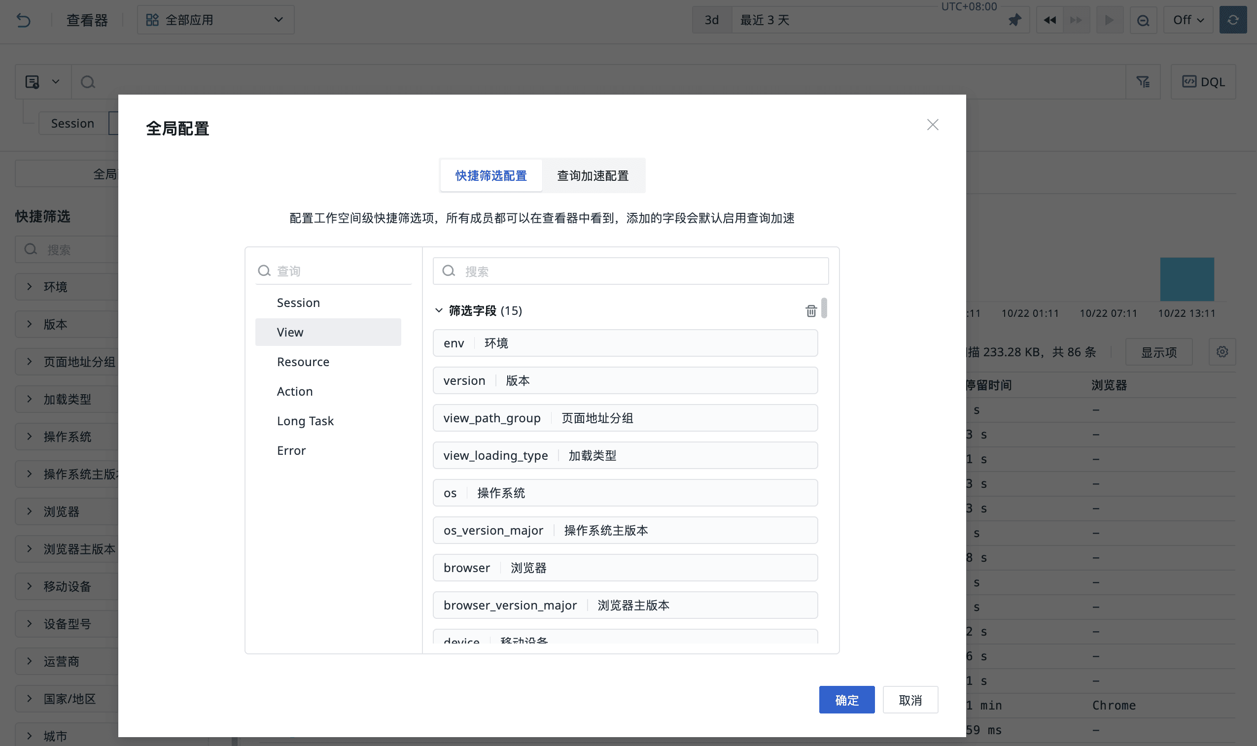 1、全局配置 > 快捷筛选配置:针对 RUM、可用性监测查看器: