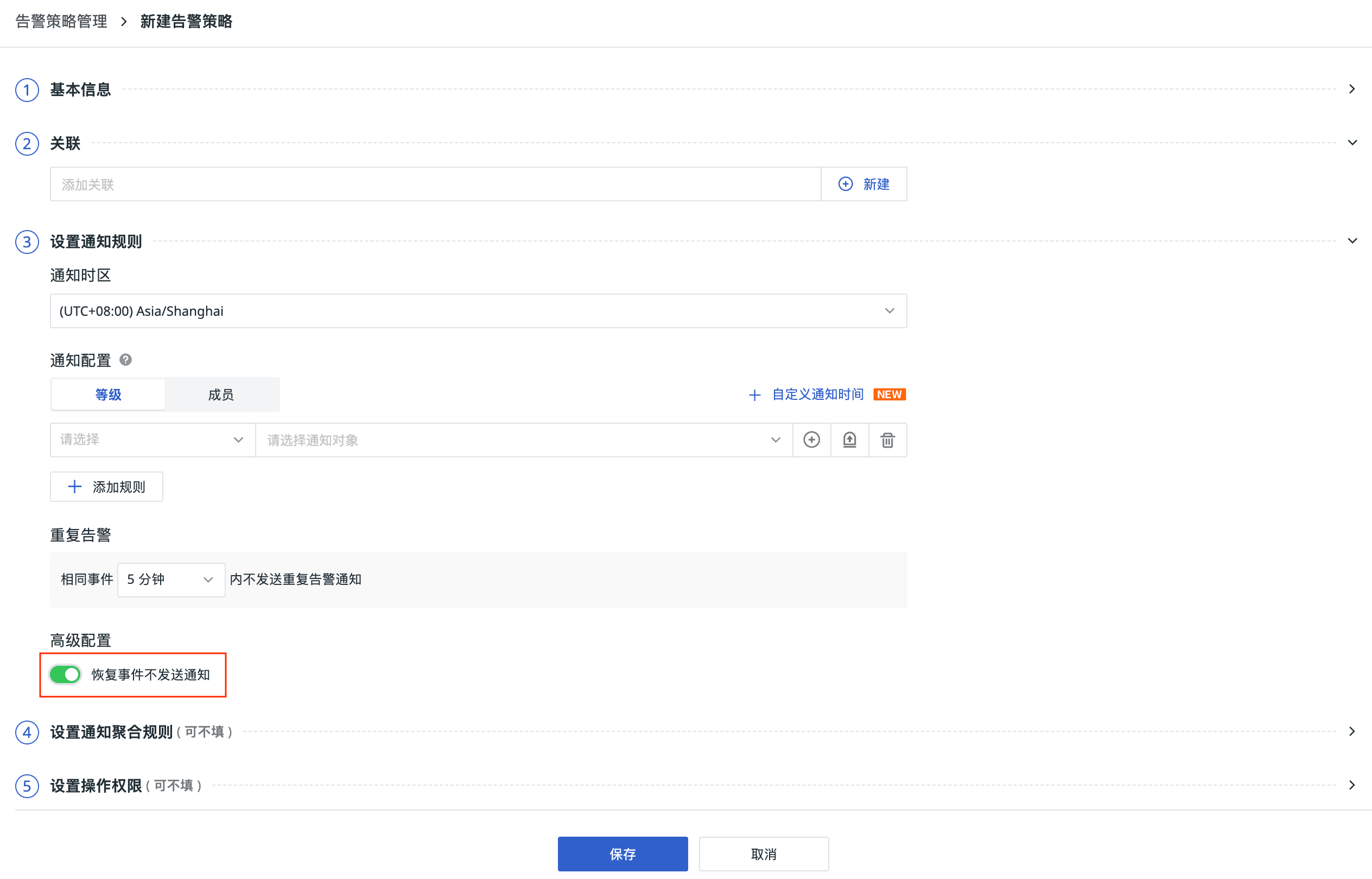 1、告警策略:新增支持恢复事件不发送通知:开启该选项后,所有的恢复条件仅生成事件,不对外发送通知。
