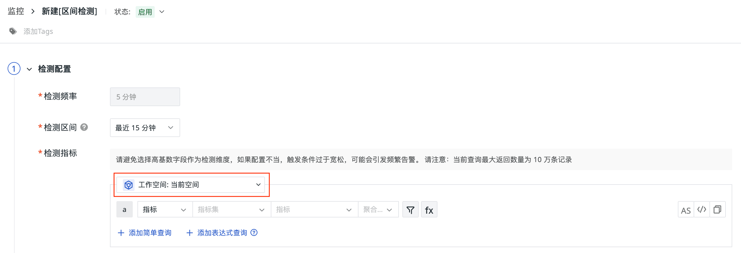 区间检测、离群检测:支持跨空间查询检测指标。