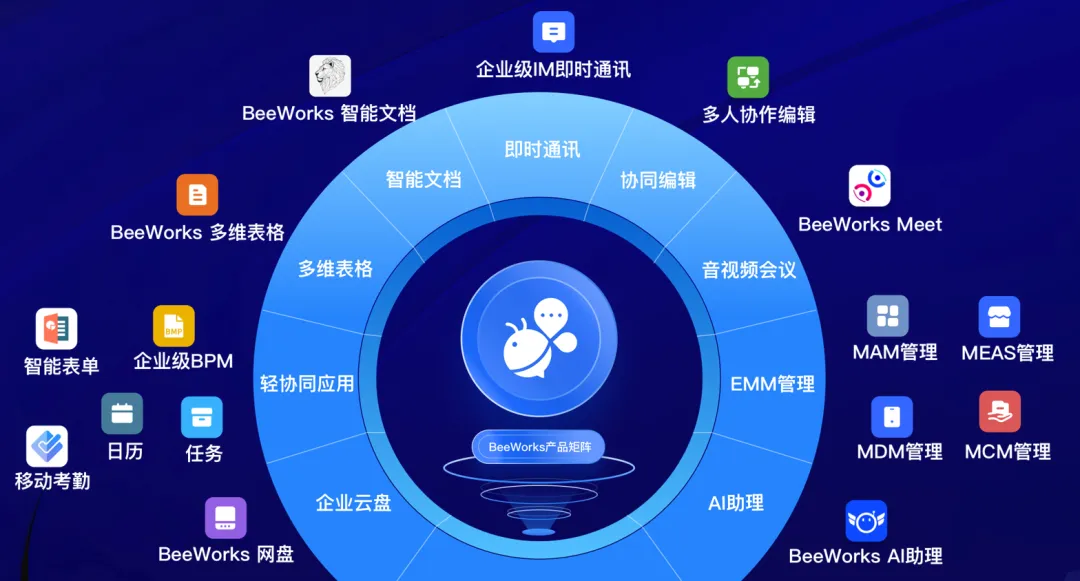 这正是 BeeWorks 正在实现的愿景。它不似传统 IM 功能单一,也不像传统 OA 大而全却显臃肿,而是选择打造一个安全可靠的企业数字底座——以私有化部署的即时通讯为核心,无缝集成各类办公功能,形成完整又协调的“一体化办公套件”,秉持“轻协同”理念,让团队协作更轻松自然,让工作效率真正提升。