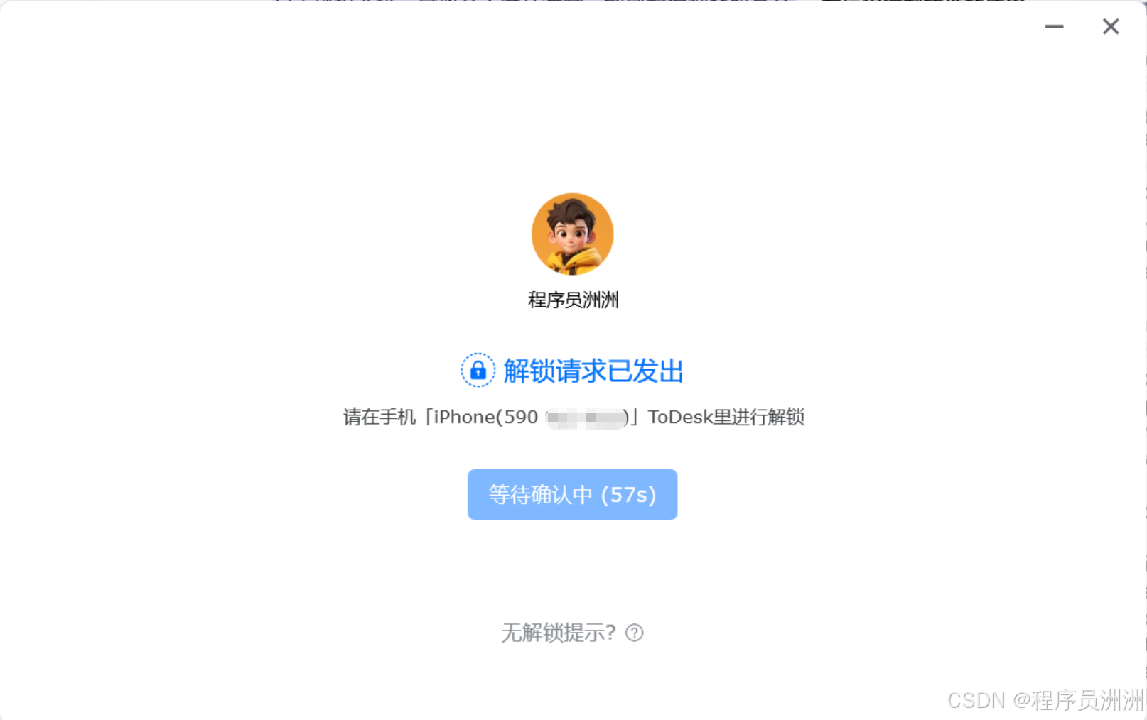当开启 ToDesk 二次验证保护之后,就会向主设备(手机)发起申请,需要二次验证。