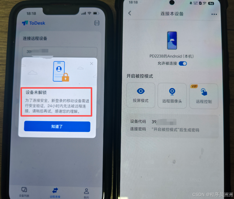 同样的,我们使用电脑去控制手机,也一样会进行 24 小时等待期的安全提示。