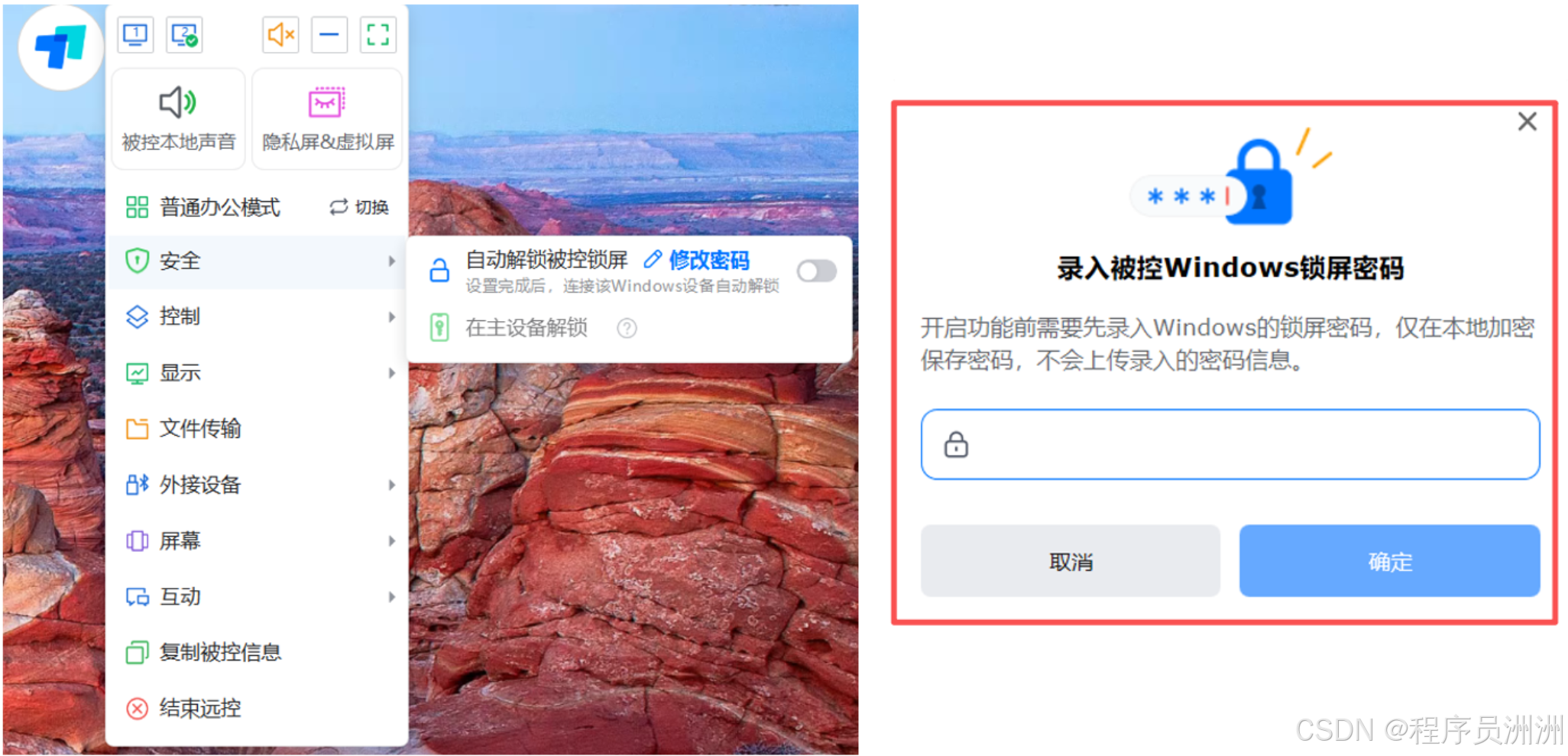 其次是 ToDesk 客户端锁定,当使用者离开电脑,为防止他人使用电脑上的 ToDesk 进行操作时,可以进行 ToDesk 锁定,这样只能主设备(或者安全密码等)解锁,如下图所示。