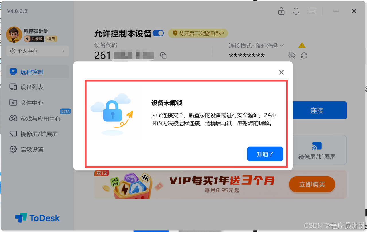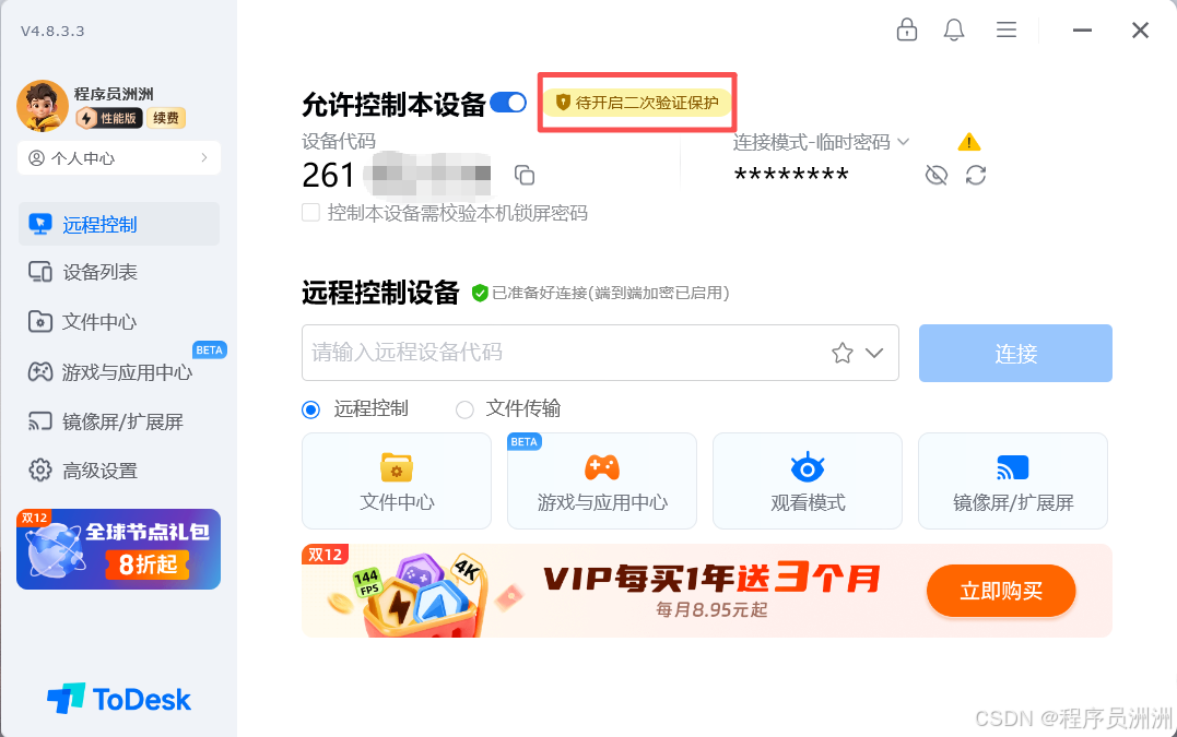 2025 年新增二次验证保护的版本,号称是“史上最安全的 ToDesk”!