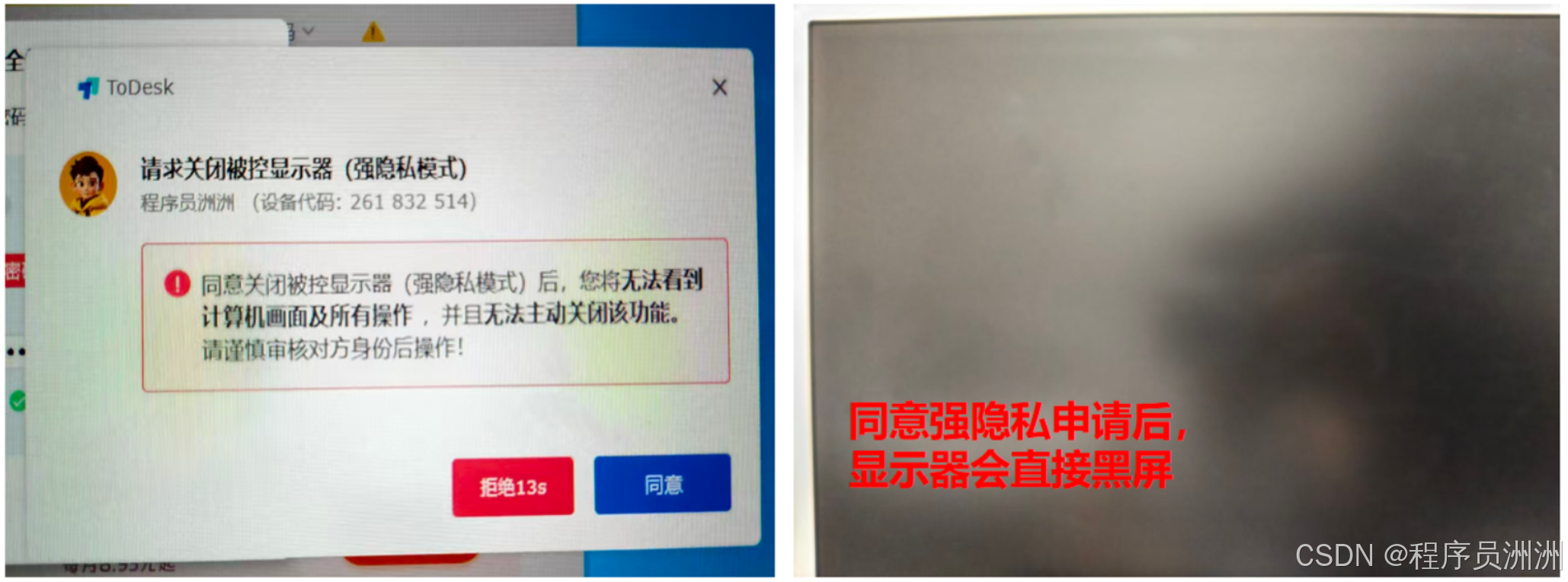 如下图所示,当点击同意强隐私请求之后,显示器会强制进行黑屏从而达到强隐私状态。
