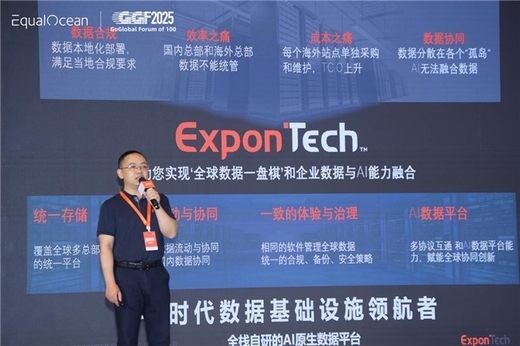 2025 年 9 月 20 日,在由 EqualOcean 举办的「2025 出海全球化百人论坛」(2025 GoGlobal Forum of 100,GGF2025)上,华瑞指数云(ExponTech) 作为 AI 原生数据基础设施的代表企业发表主题演讲,分享如何通过新一代分布式数据平台,助力出海企业实现“全球数据一盘棋”,高效应对数据合规、协同与管理挑战。