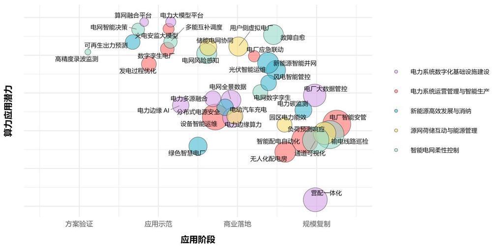 算力应用集中于监测节点密集、数据条件成熟的输电与用电侧。新能源功率预测、源网荷储一体化协同等支撑新型电力系统建设的场景,成为未来算力需求的重点方向。
