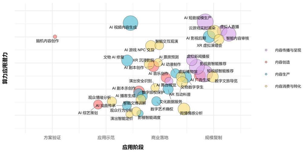 算力应用形成从创意、制作到分发的完整链条。影视制作、沉浸体验类场景已进入商业落地阶段,短视频智能推荐、虚拟人直播等内容分发场景已实现规模复制。