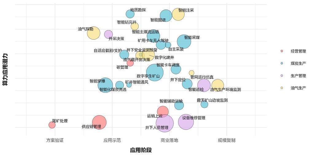 应用成熟度呈现安全驱动的阶梯式分布。设备维修管理、安全监测预警等能有效降低井下风险的场景已广泛落地,数字孪生矿山、智能掘进等全流程智能化场景正处于示范验证阶段。
