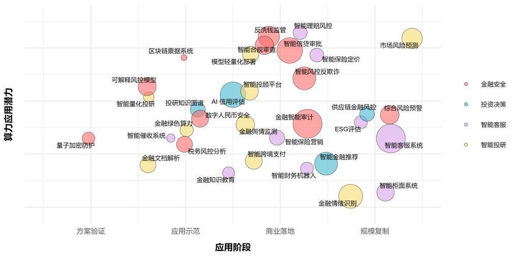 移动支付、数字信贷等应用已成为成熟服务模式。智能客服、反洗钱监控等场景已大范围落地,行业正推动算力向投研、风控等核心决策性场景深度突破。