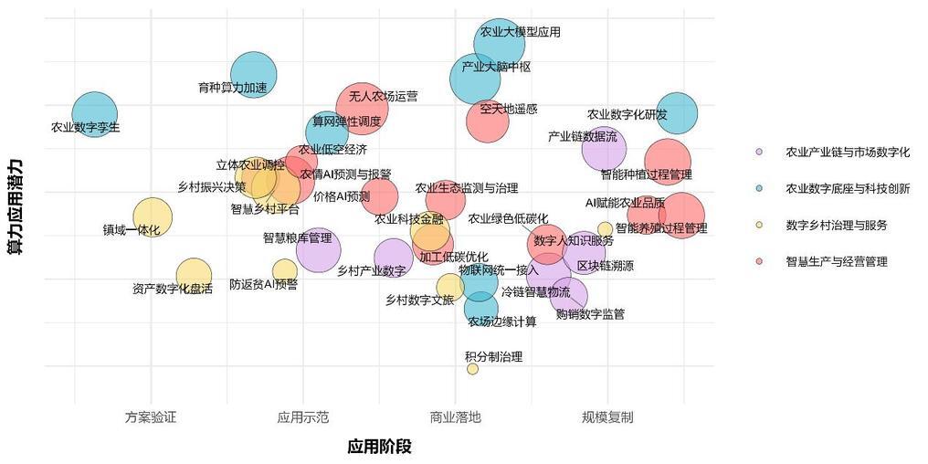 算力应用呈现生产采收环节场景多、智能化程度高的特征。智能育种、空天地遥感监测等场景对高性能算力需求迫切,而区块链溯源、智能养殖等已进入规模复制阶段。
