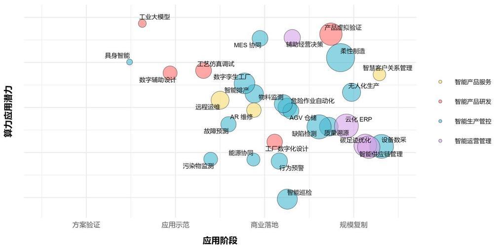 智能化进程正从外围辅助向生产控制核心深度渗透。柔性制造、产品缺陷检测等场景已规模复制,而工业大模型、生产优化与决策中枢等核心决策环节的应用正处于深化阶段。