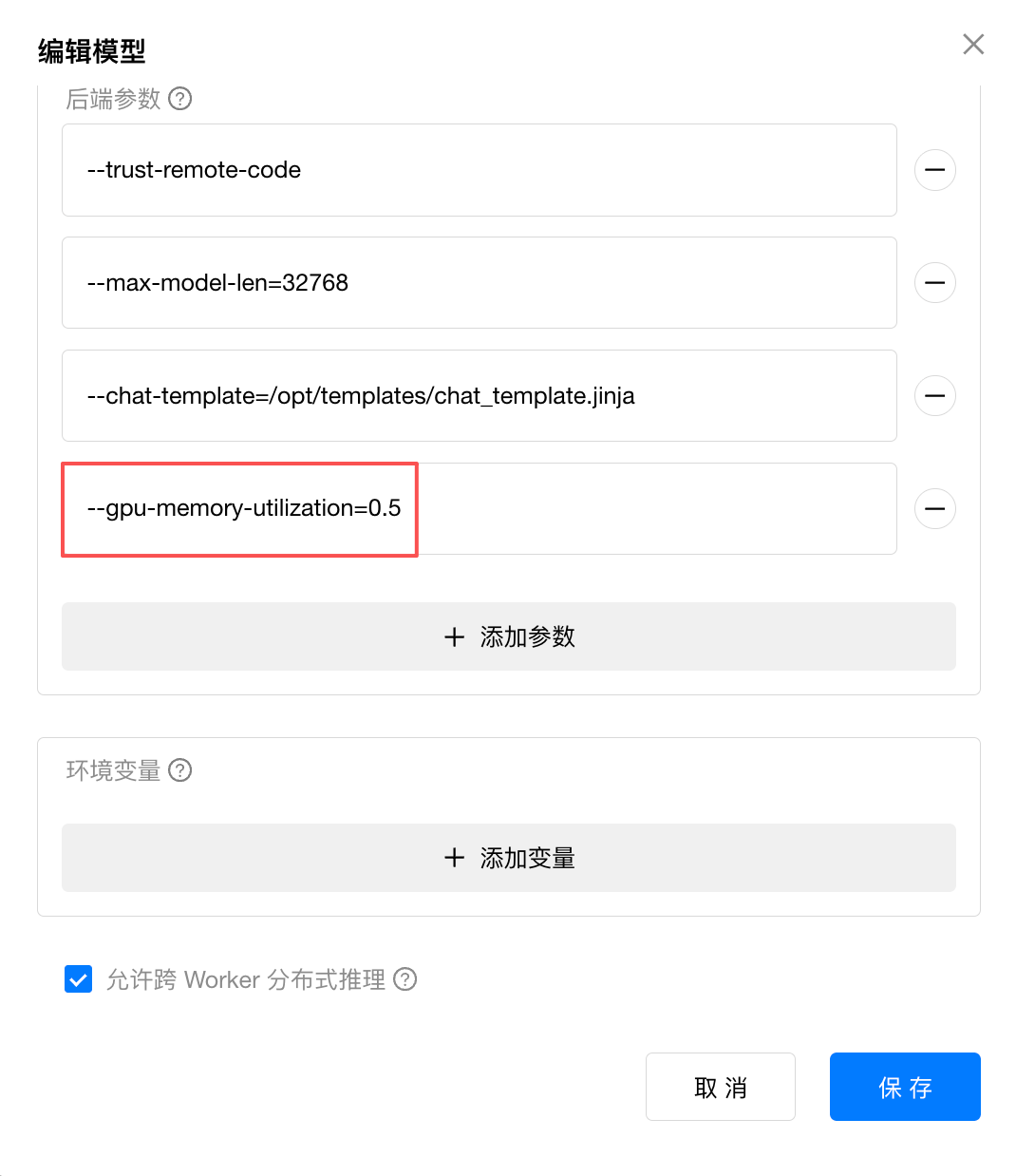 vLLM 默认占用 GPU 的 90%显存,若需要部署多个模型,可以通过 --gpu-memory-utilization 参数手动控制模型的 GPU 分配比例(取值范围 0~1):