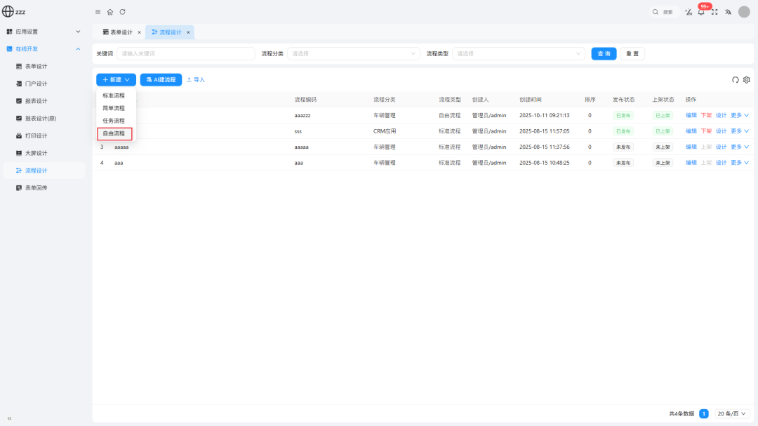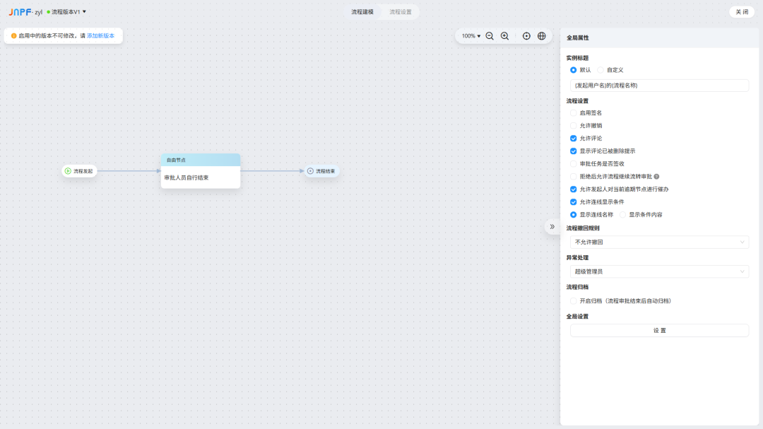 自由流程打破了传统固定审批链路的束缚,以“开始-自由节点-结束”三大固定核心节点为基础,支持添加触发节点和连线,连线不允许设条件。构建了一种全新的审批流转模式。在自由节点,审批人可以根据实际业务需求,自主选择下一个审批节点及责任人,实现了审批流程的个性化定制。