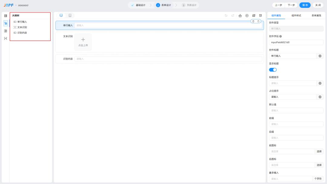 表单设计界面左侧新增 Tab 切换,大纲树按顺序显示当前表单所有控件,点击控件即可快速选中,提升控件管理效率。