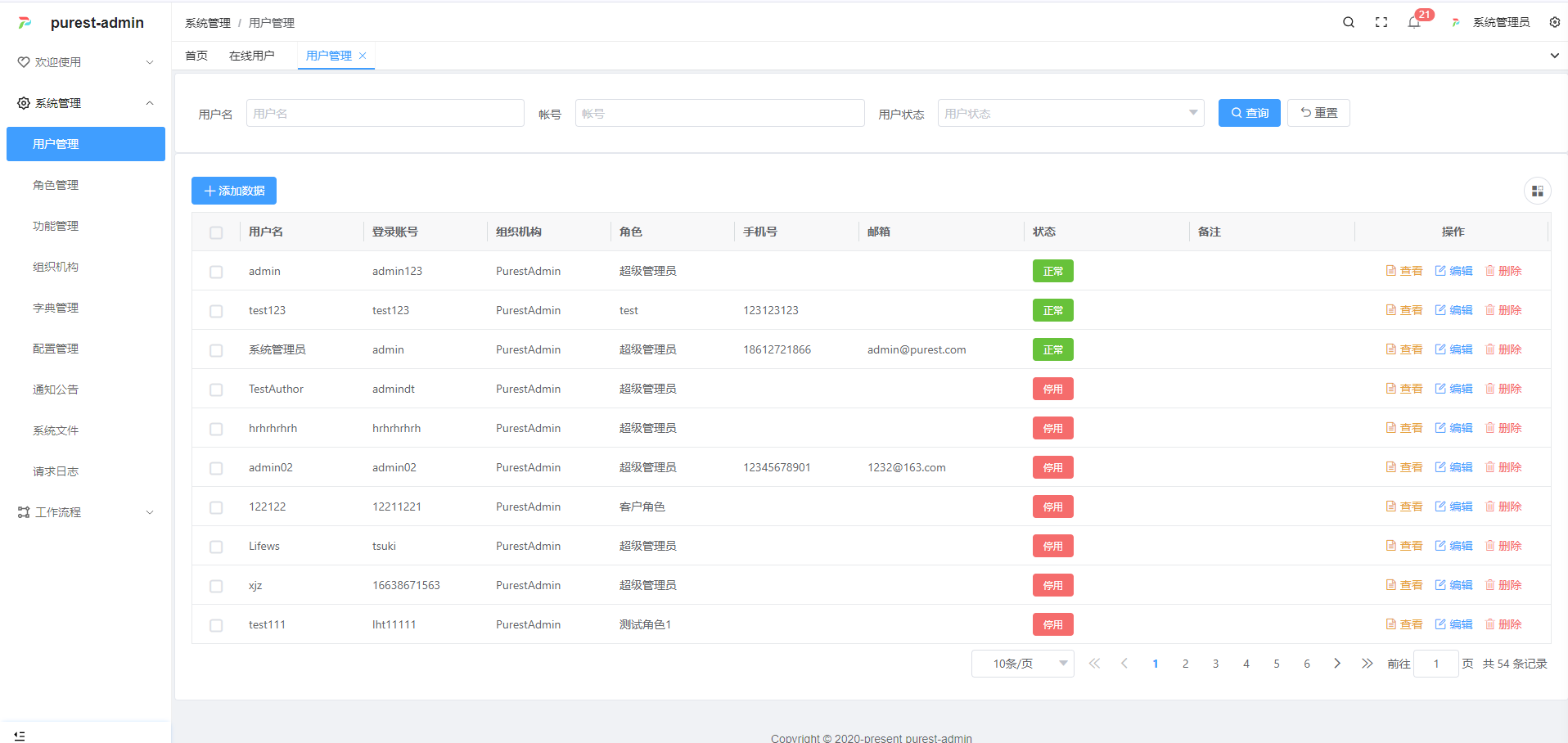 在线演示地址:http://www.purestadmin.com(用户名/密码:admin/123456)