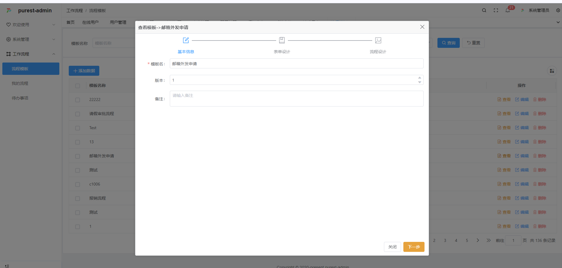 工作流程(表单设计、流程设计、待办事项等)