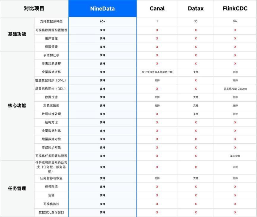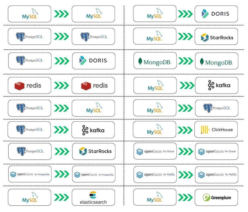 数据复制与对比支持 60 种主流数据库之间的数据迁移、实时同步、数据对比,可以完全替代 Canal、FlinkCDC、DataX、DTS 等产品,用于数据库信创迁移、ETL、容灾、跨云数据同步等场景。