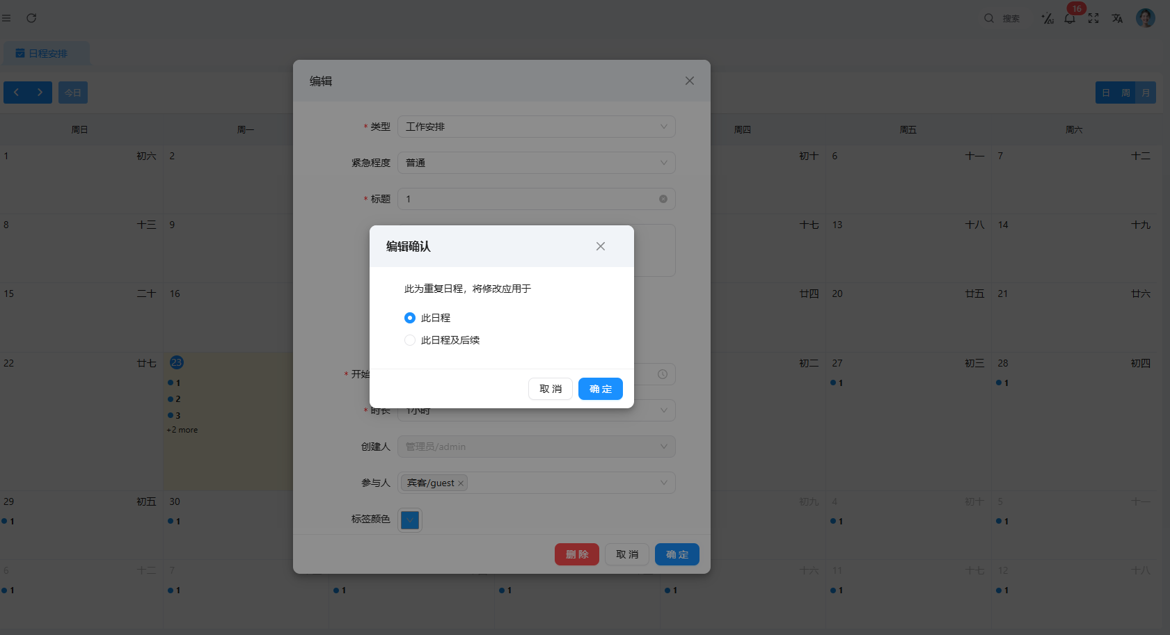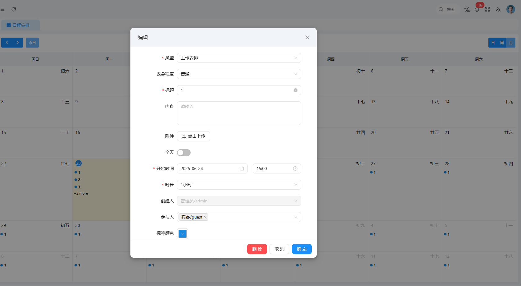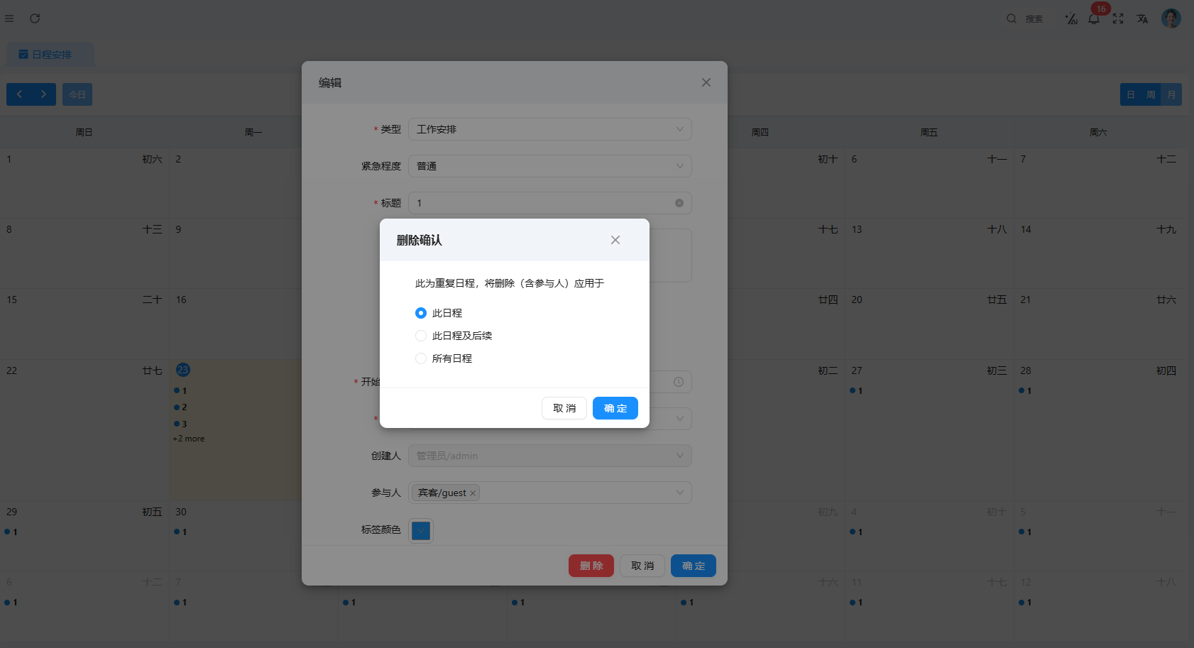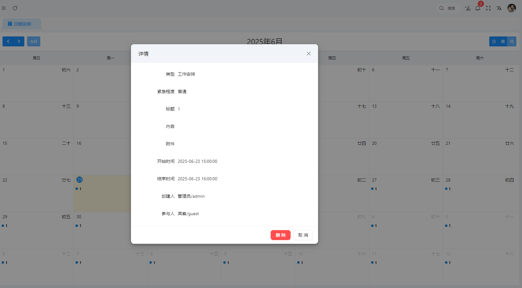 直接在编辑弹窗点击“删除”,确认后该日程会被彻底删除,创建人、参与人的日程表中都会同步移除,适合删除临时取消的单次事项(如取消当天的部门会议)。