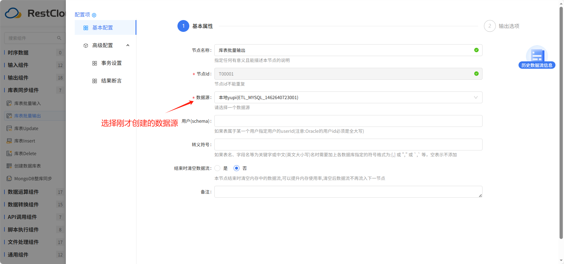 在基本属性配置里面选择刚才创建的数据源,其他配置默认。