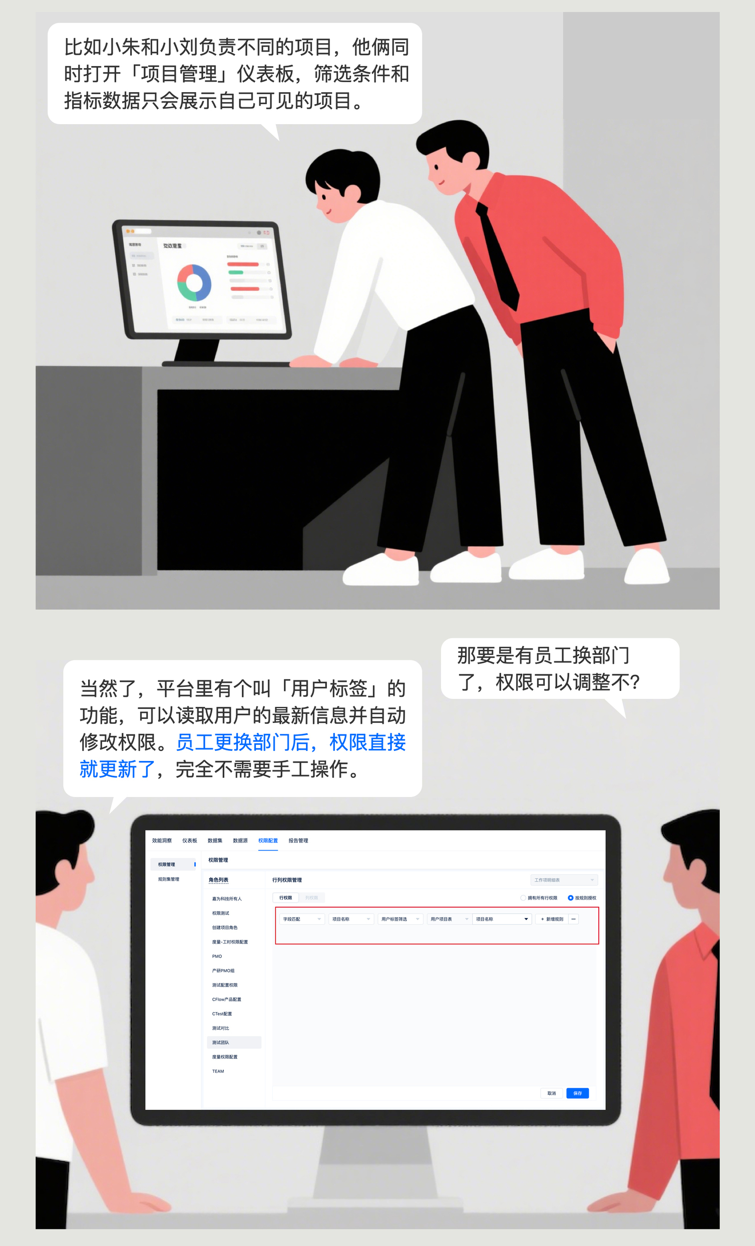 通过控制指标数据行权限,实现项目、部门数据隔离。