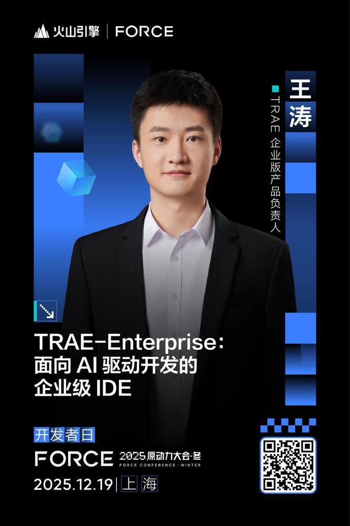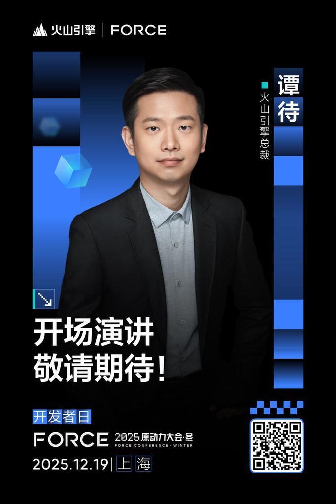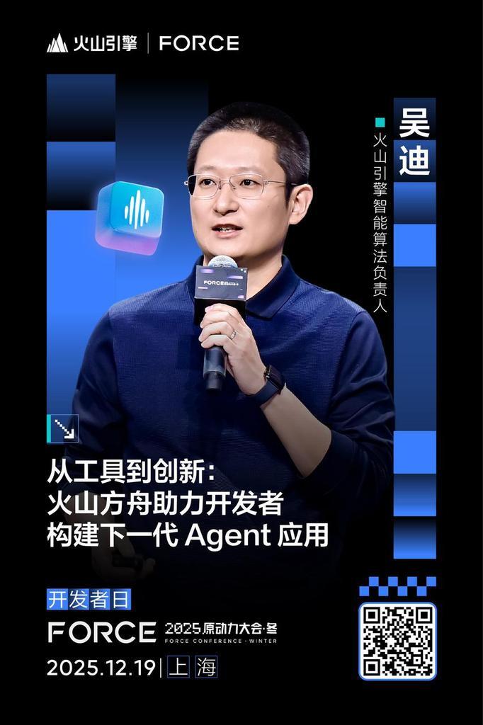 火山引擎 Force 原动力大会开发者日主论坛重磅演讲嘉宾已就位!火山方舟、扣子、TRAE、AgentKit……从大模型服务平台到 Agent 开发平台和 Agent 开发工具,为开发者带来 Agent 开发落地的高效指引!技术分享、案例解析、动手实操、展区互动一场 AI 云原生的年终技术盛宴就在📅12 月 19 日上海世博中心我们不见不散!