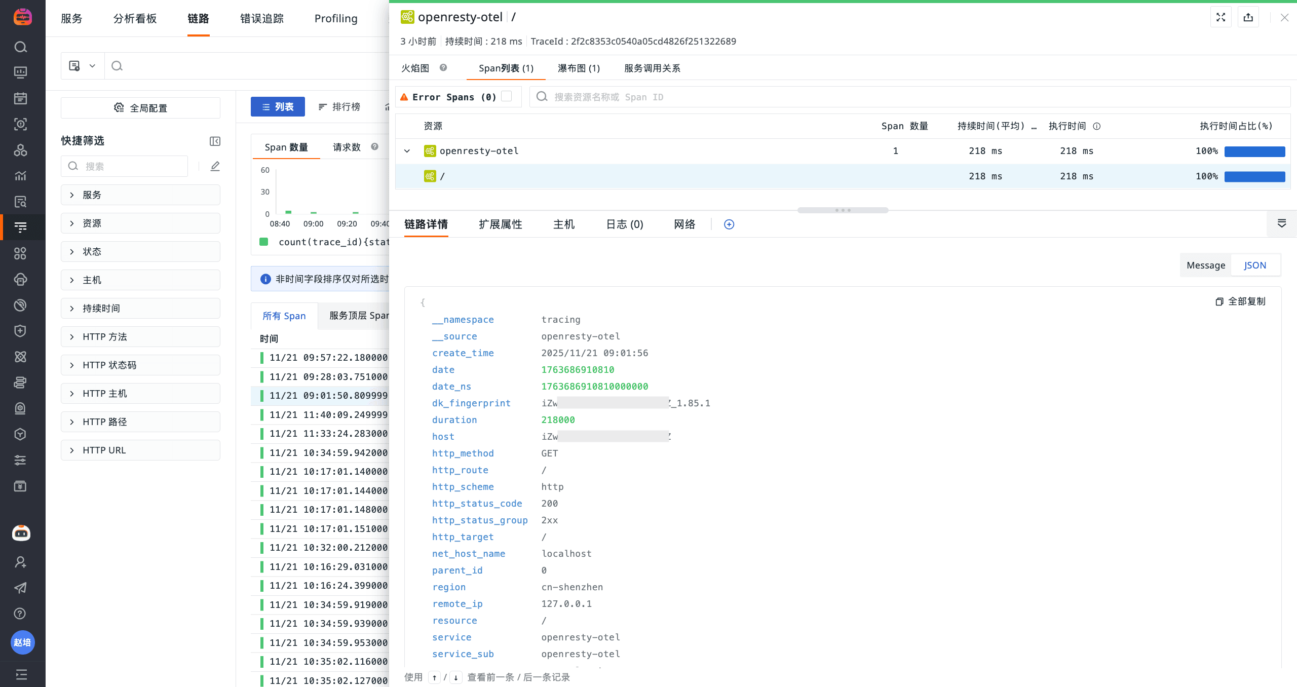 OpenResty(Nginx+LuaJIT 高性能 Web 平台)通过 ngx_otel_module 模块采集调用链数据,经观测云 DataKit 采集器的 OpenTelemetry 采集器接收,实现链路追踪数据在观测云平台的统一分析上报。
