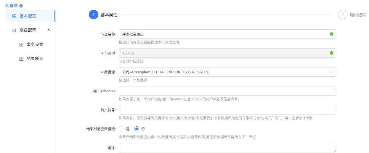 库表批量输出组件配置
