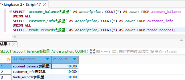 查看运行前批量库表输入组件 Kingbase 数据库的数据的数量