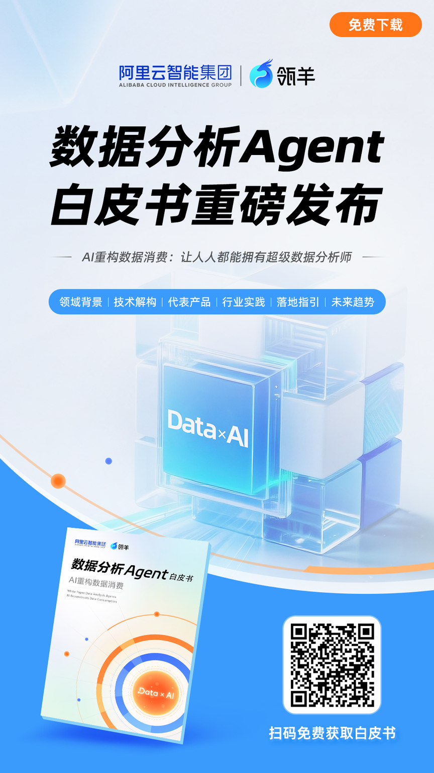 洞见 Data x AI 未来,驾驭数据分析新变革。扫码回复“数据分析”,免费获取白皮书。