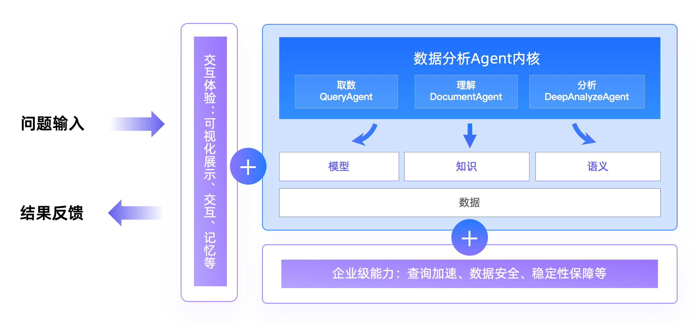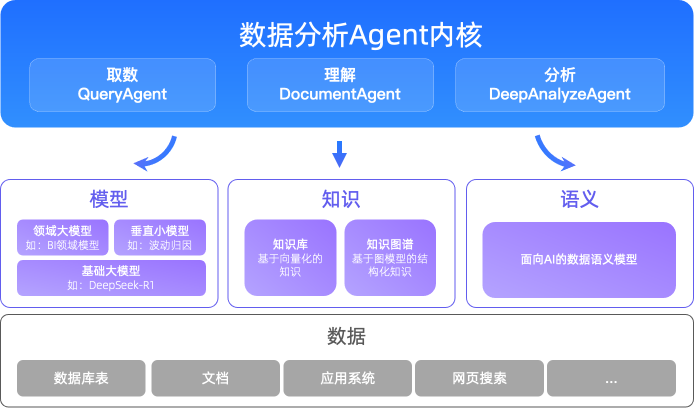 2023 年,LLM 突破自然语言理解瓶颈,使对话取数成为可能,智能问数(ChatBI)成为数据分析业界的普遍方向;2025 年,Agent 技术的发展赋予了 AI 系统自主规划、执行、反思的能力,数据分析 Agent 也成长为能够理解业务需求、自主处理数据、生成专业洞察的企业级智能助手。