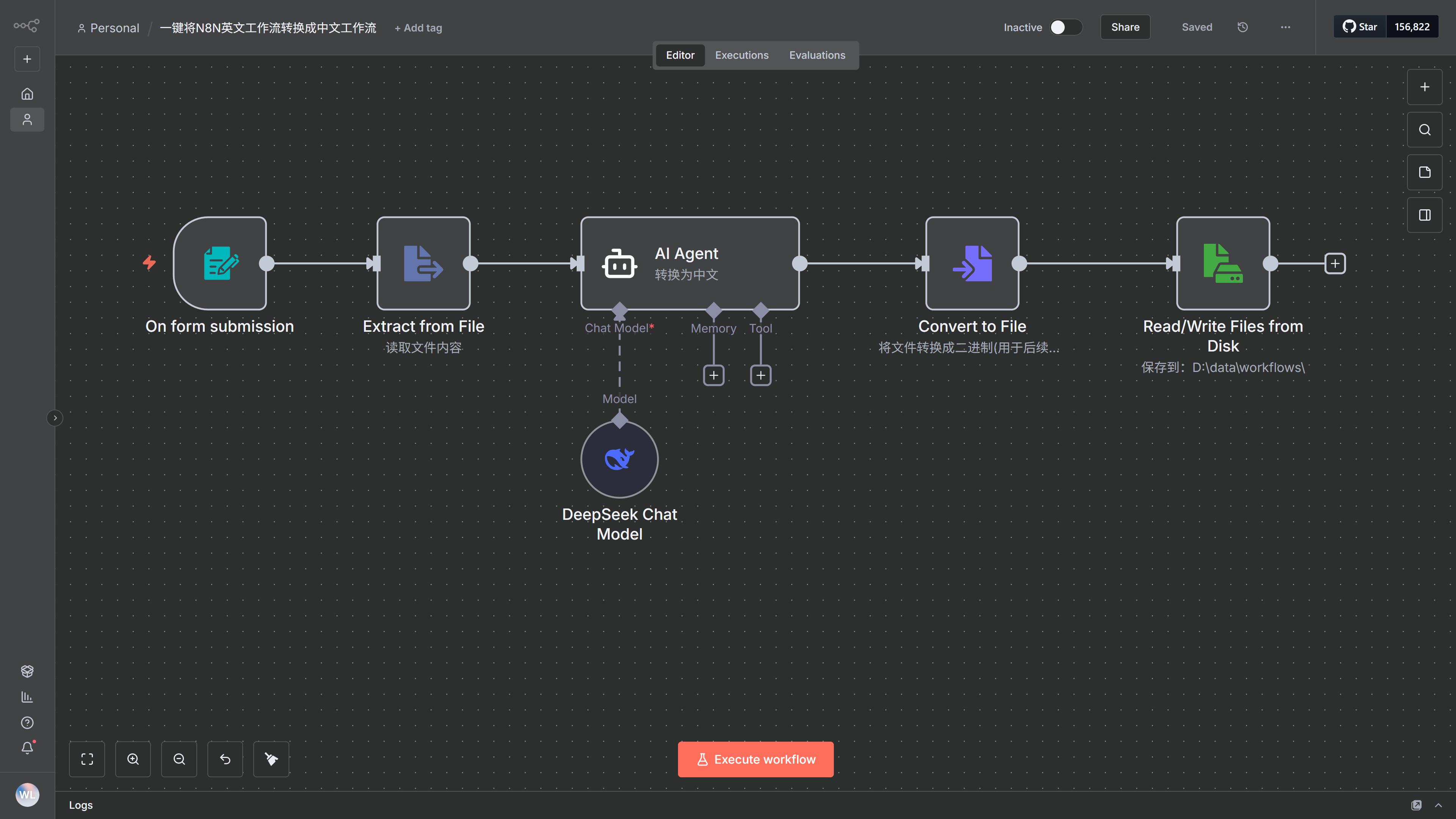 将转换后的中文工作流保存至本地。