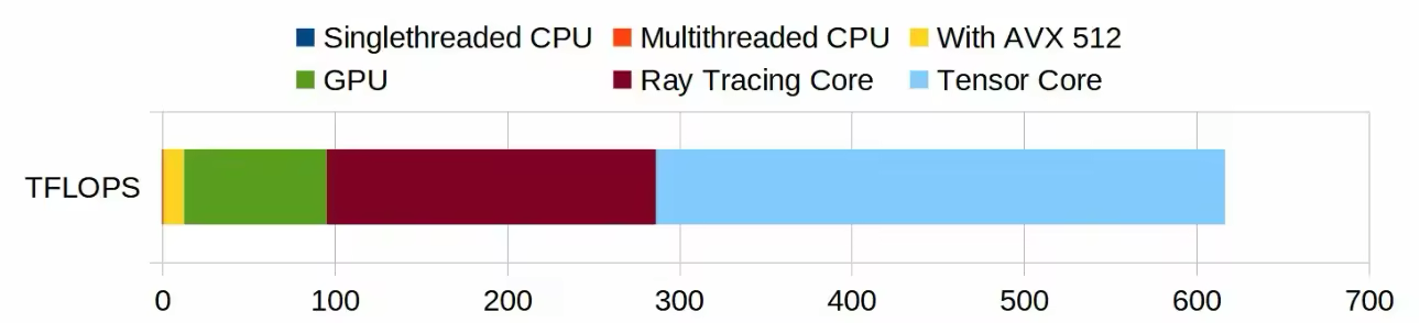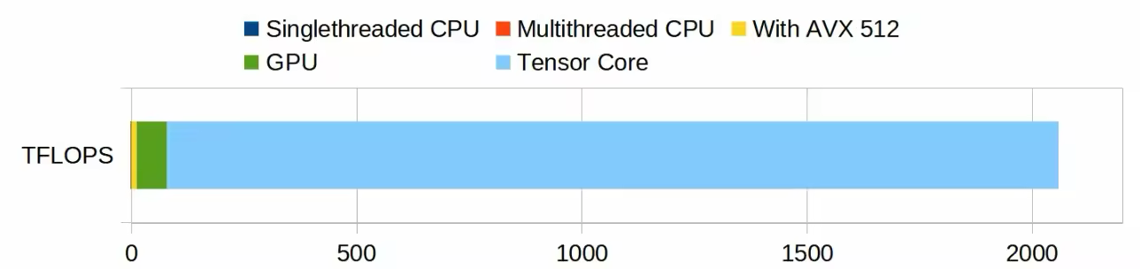 下面的图示比较了一台家用 PC(Ryzen 9950X + 4090)中 CPU 与 GPU 的计算性能: