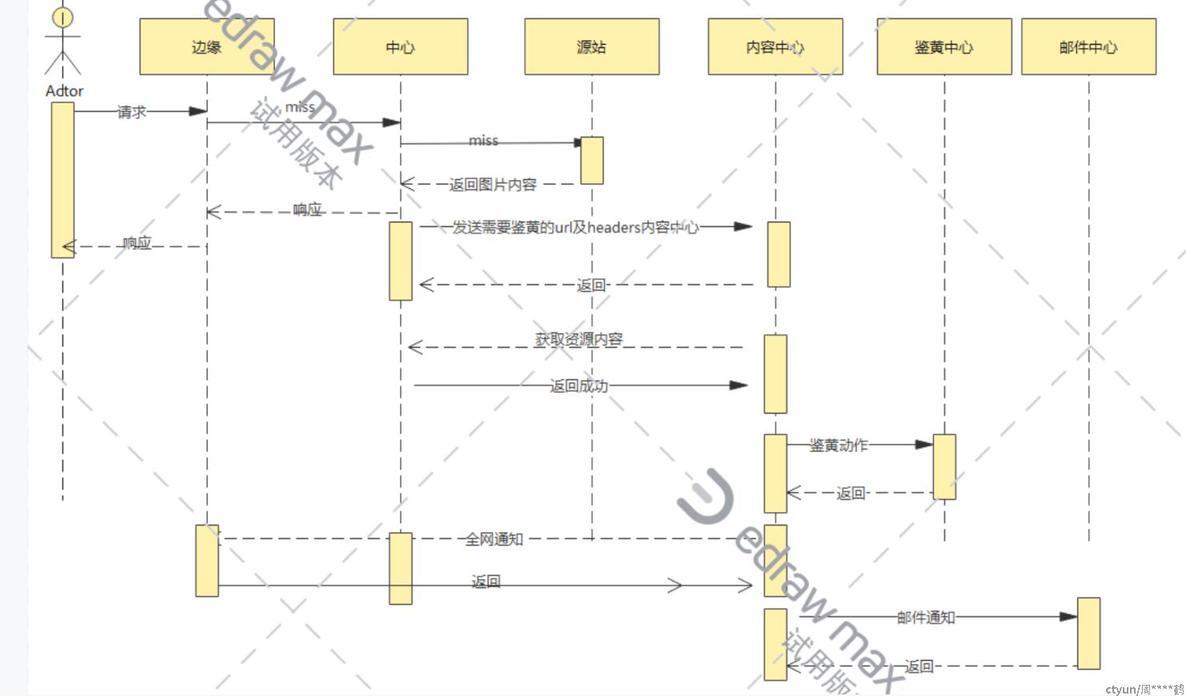 内容审核流程:用户发起请求到边缘节点,首次请求资源 miss 回源,源站返回图片内容后吐给用户,中心节点在收到完整数据后给内容中心发送请求的 url/网关 ip,内容中心去指定网关获取资源案后发起资源鉴定,若鉴定结果异常(涉黄/涉恐/涉暴)则把资源 url 分发到全网缓存设备,缓存设备存储资源的内容审核结果并做本地持久化。内容中心负责把异常资源以邮件的形式通知给客户。