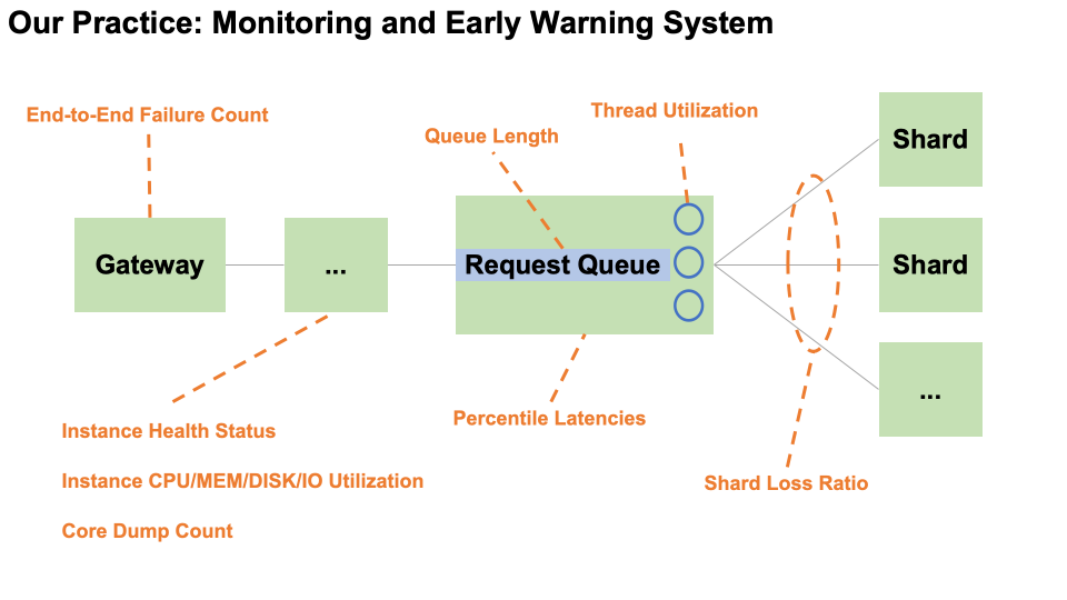 核心服务关键指标:包括请求队列长度、线程利用率、分位点延迟,等等