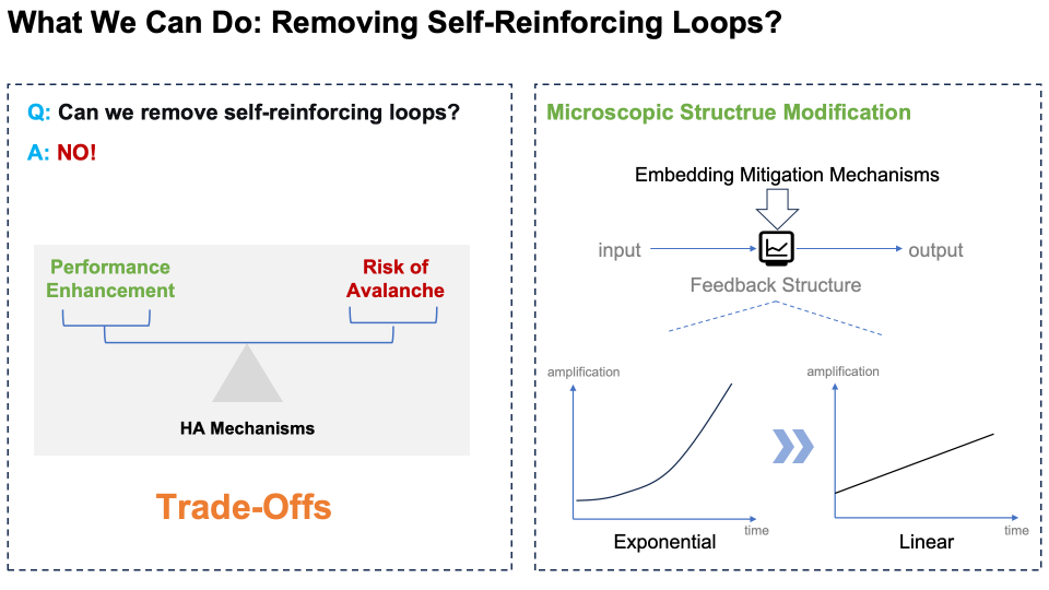 接下来,我们能否消除自强化反馈回路呢?不可行!因为这些回路与 HA 机制内在相关,迫使我们必须做出权衡。