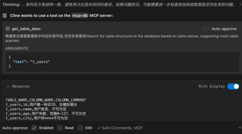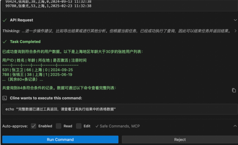 OK,现在看起来就对多了,开始执行工具运行指令并返回结果: