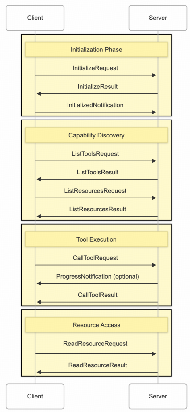 客户端就是通过 ClientSession 对象与服务器交互,主要包括初始化连接、工具调用和资源访问: