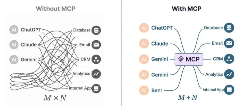 综上,RAG 与 Function Calling 互补,前者用于知识检索,后者用于执行操作,二者均可提升模型实用性,但目标维度不同,且存在难集成,扩展性差的问题,开发者往往需为不同模型重复实现工具调用逻辑。