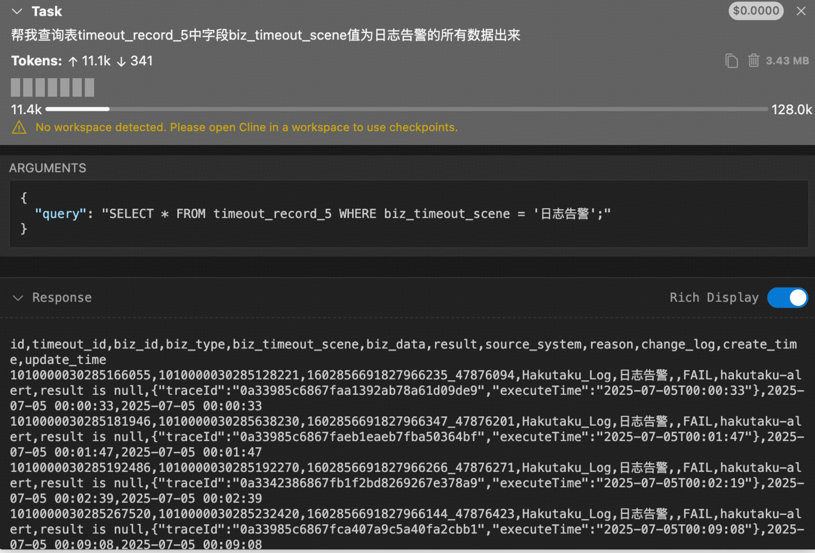 其他的比如:查询某表中告警信息。此处给出了明确的库表信息,回答的就很精准。