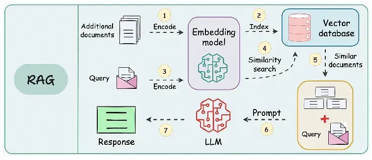 RAG(检索增强生成) 通过检索外部知识库获取与问题相关的实时信息并将其注入模型提示词,生成更精准、时效性更强的回答。 其工作原理为 :当用户发出提问时,AI 应用通过向量检索、关键词匹配等方式,从外部知识库或数据源中搜索相关信息,再把检索到的信息作为上下文提供给大模型,让大模型基于补充的信息进行回答。技术流程: 用户提问→问题向量化→向量数据库相似度检索→拼接上下文提示词→模型生成答案。