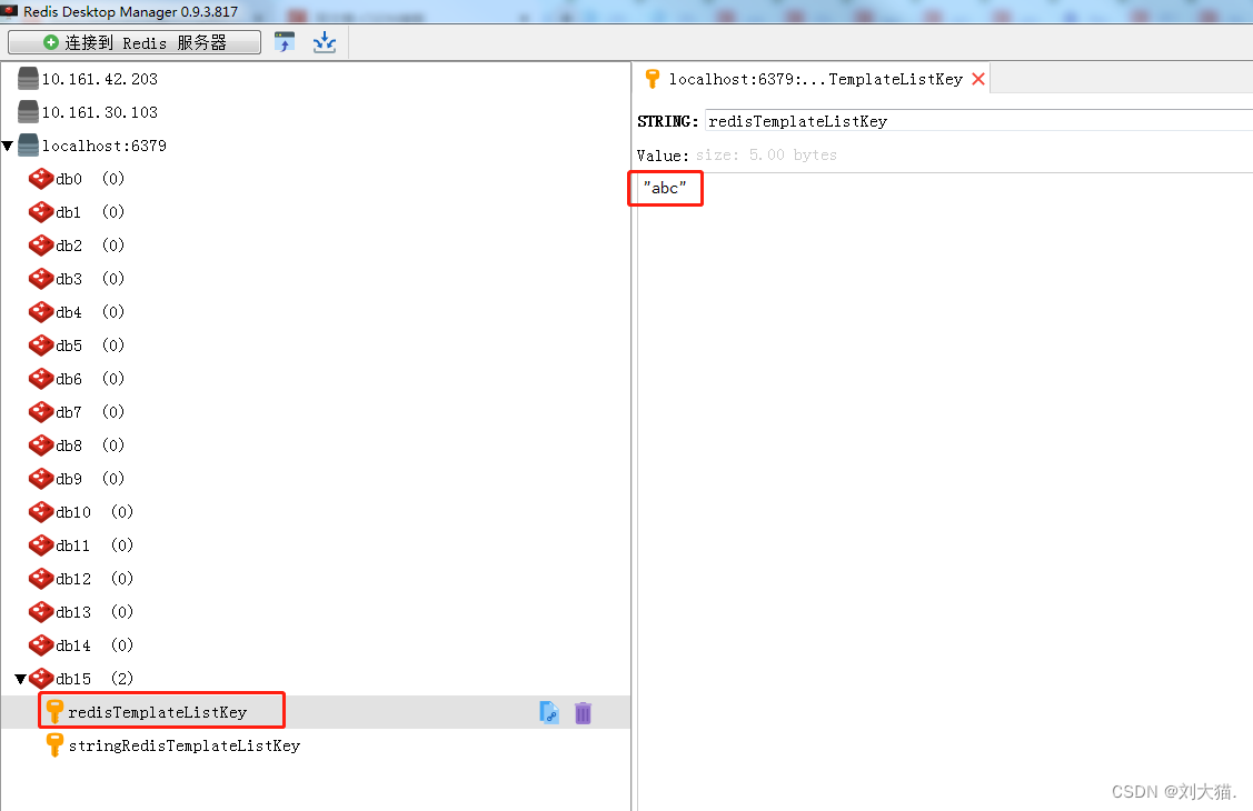 <font color='red'>区别点 3:(疑惑点)</font>两者的数据是不共通的;也就是说 StringRedisTemplate 只能管理 StringRedisTemplate 里面的数据,RedisTemplate 只能管理 RedisTemplate 中的数据。