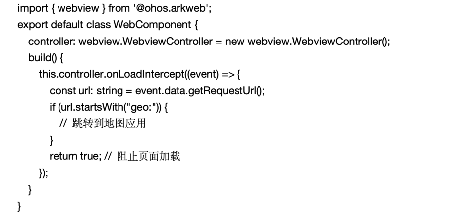 Web 组件可以通过拦截 Intercept 回调来处理 Deep Linking 链接,实现应用跳转。