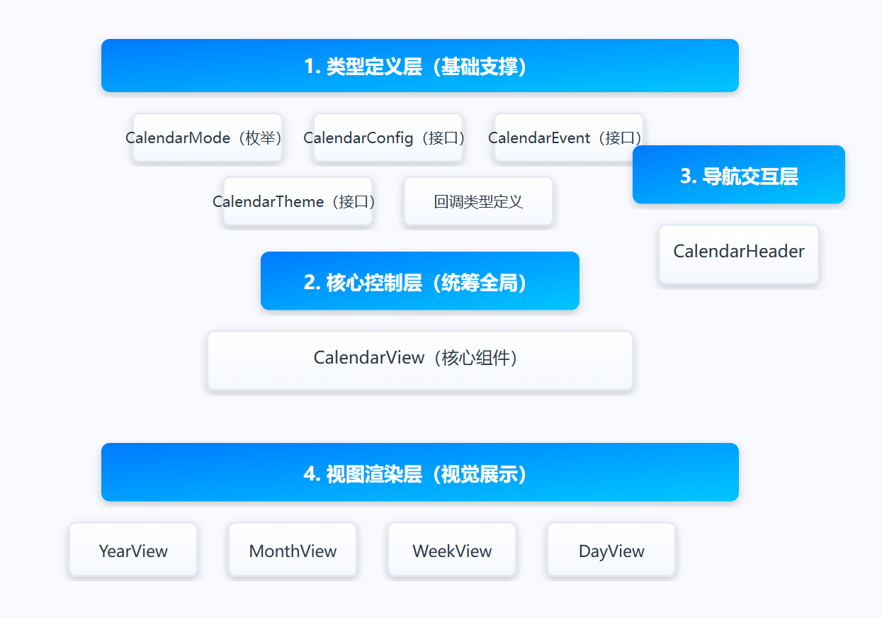 这一层是组件库的“骨架”,用枚举和接口规范了所有输入输出,避免了类型混乱:CalendarMode