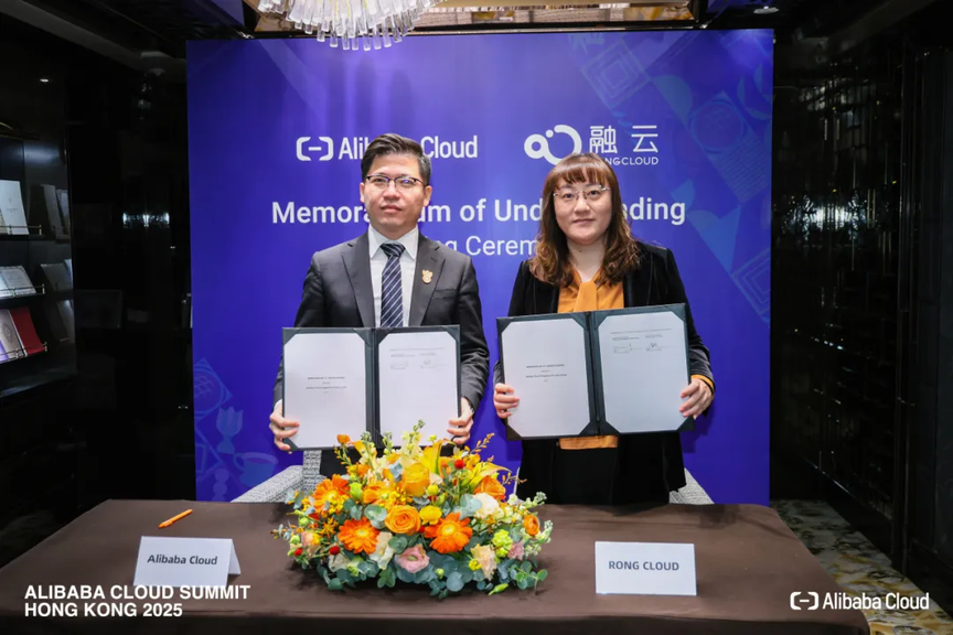 11 月 26 日,融云与阿里云在“阿里云香港峰会 2025”上正式签署合作备忘录,阿里云智能港澳区总经理袁志明先生与融云 CEO 董晗女士出席了签约仪式。