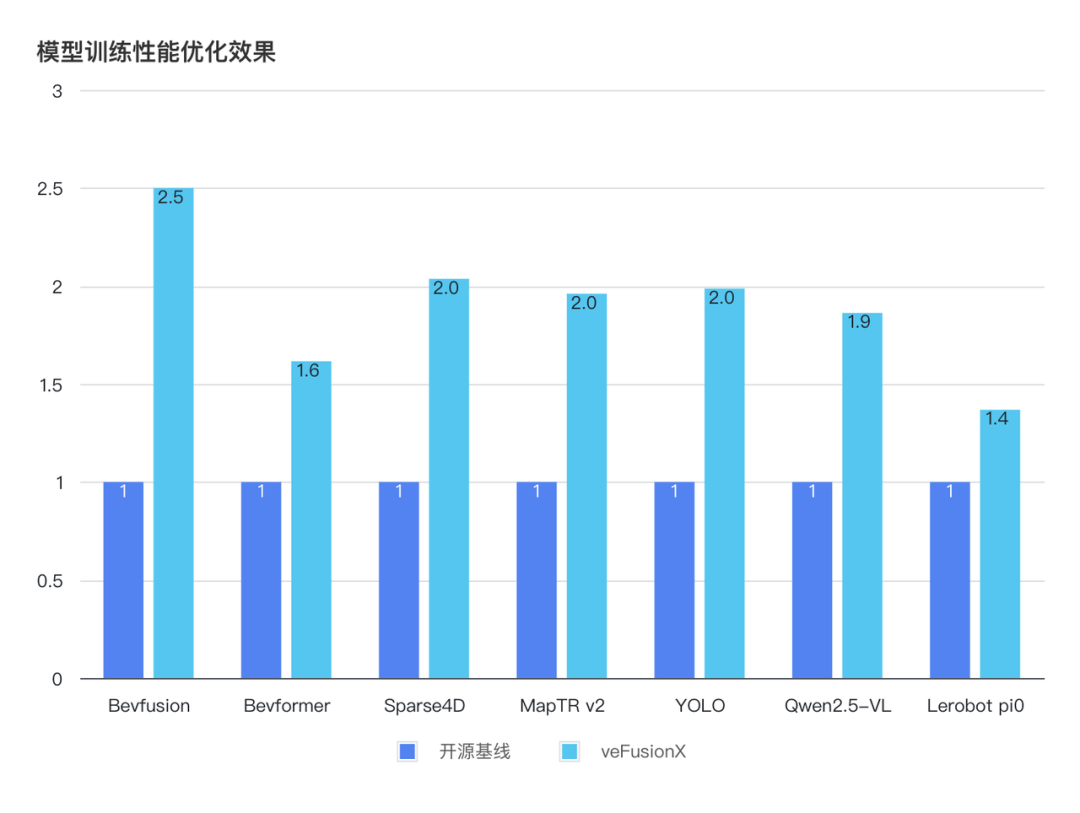通过这些多维度的优化,veFusionX 显著提升智驾模型的训练性能: