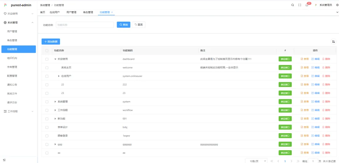 项目简介: Purest Admin 是一个基于 .NET 8 + Vue3 实现的前后端分离、极简 RABC 权限管理系统,基于 LGPL-3.0 协议开源,后端在 ABP 框架的设计上进行了精简和改良,前端基于 vue-pure-admin,前端极强的表格框架 vxe-table,旨在为 .NET 开发者提供一套简洁、高效、可扩展的快速开发解决方案。